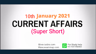 10th January 2021 Super Short Current Affairs for UPSC Exam.
